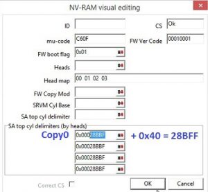 1.打开NV-RAM 工作 ⇨ NV-RAM可视化编辑。然后通过添加 0x40 步长来更改第一个 SA 顶部圆柱体(我们示例中的新值是 0x00028BFF,该值可能因您的情况而异)。通常,对于正确的初始化来说,至少有一份好的 SA 模块副本就足够了。在我们的示例中,我们仅使用 Copy0(其他 3 个值保持不变)。