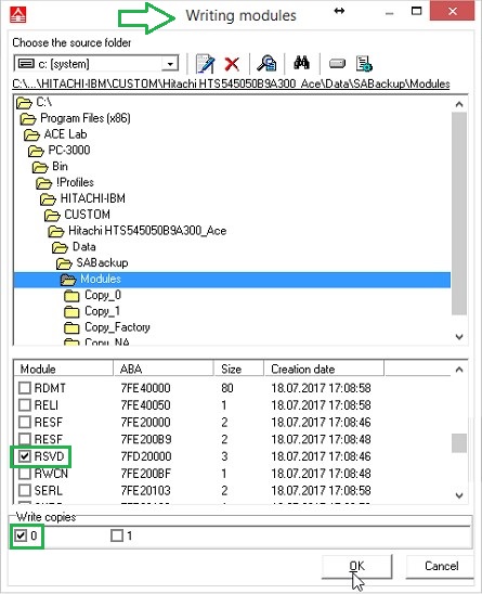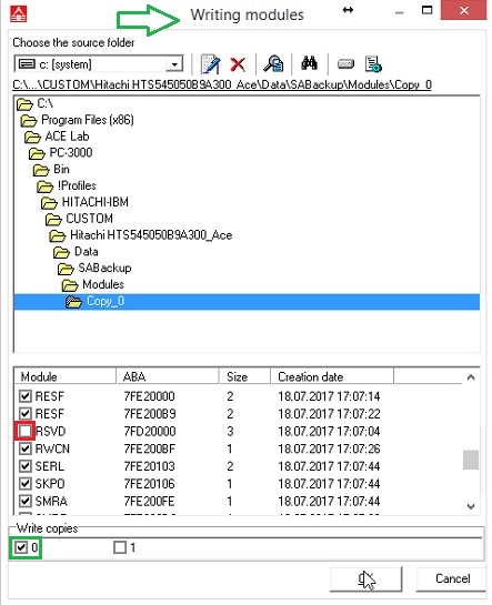 4. 将所有 Copy0 模块(RSVD 除外)从 Backup重写到新位置。