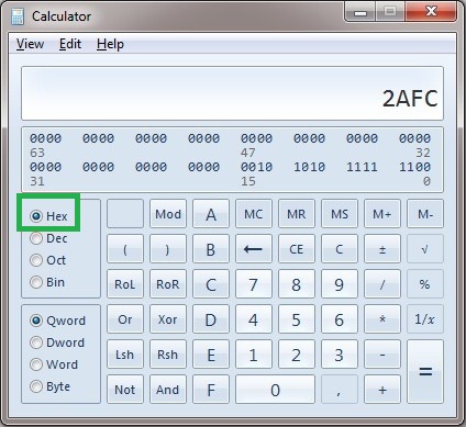 注意:所有计算都应以十六进制进行。要转换数字,您可以使用标准的 Windows 计算器。