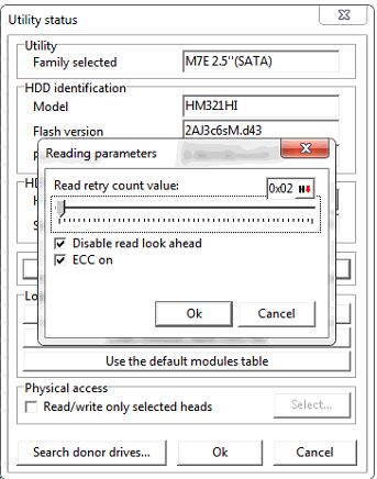 为了解决这个问题,我们建议您减少 Utility status -> reading parameters 菜单中的 Read retry count 值。