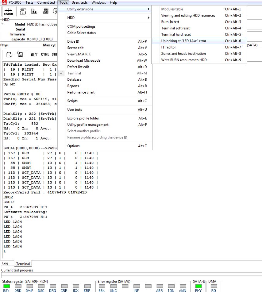如何解决三星驱动器数据恢复过程中经常出现的LED 1A04错误。一开始,FW 看起来是可读的,但后来有些东西阻止了驱动器初始化,它只是挂起。因此,您无法读取数据以及服务或用户区域。